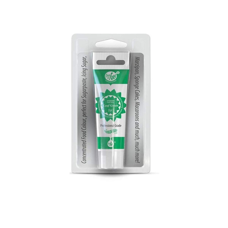 To colour your cakes and all your preparations, Rainbow Dust's Progel Green Gel Dye is perfect. Very concentrated, a small amount is enough to give your creations a rich and deep colour. With this rainbow dust dye, you can color fondant, marzipan, buttercream, biscuits, candy melts and more. Instructions for use: Put the gel into the fondant or marzipan and knead until the colour has mixed. Knead well until the desired result is achieved. Instructions for use: Apply the gel to fondant or marzipan and knead until the colour is distributed. Please knead well until the desired result is achieved. Then you can use the fondant or coloured marzipan on your cake! Ingredients: glycerin, silicon dioxide, propylene glycol, dyes: E102, E133, E155. E102 can have a negative impact on children's activity and attention. Allergens: This product is non-GMO, suitable for vegetarians, kosher certified and suitable for halal diets. Contents: 25 grams.