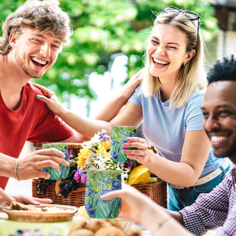 RainCaper 18/8 Stainless Steel Insulated Water Tumbler with Straw | 24oz, BPA-Free, Double Wall for Hot & Cold | Travel-Friendly, Cup Holder Ready (van Gogh Irises)