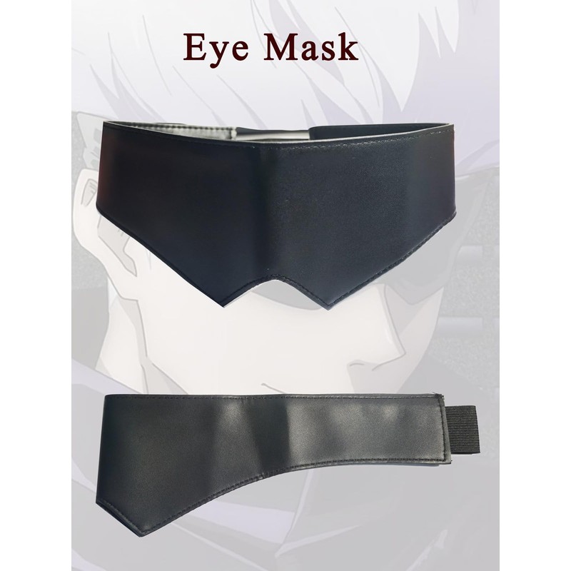 - Material -- The Gojo blindfold is made of PU leather,the length about 10.5in. The Gojo Sunglasses is made of alloy and plastic. L x W:6.7in x 0.8in