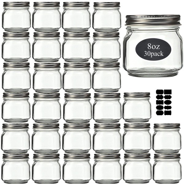 Rainforce Small Glass Mason Jars 8 oz 30 Pack With Silver Lids 1/4 Quart Can