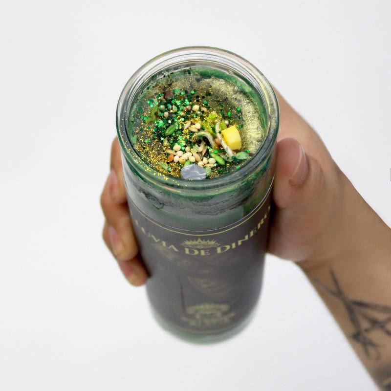 The Raining Money Candle – Veladora Aromática Lluvia de Dinero is a handcrafted ritual candle created to inspire prosperity, motivation, and financial growth. Made with rich green vegetable wax and decorated with symbolic elements, this candle is designed to support an abundance mindset and encourage opportunities for wealth and success.