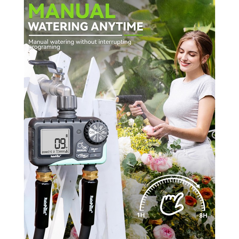RAINPOINT Water Timer for Garden Hose - 2 Zone Sprinkler Timer with Rain Delay/Manual Watering/Automatic Irrigation for Yard Lawn