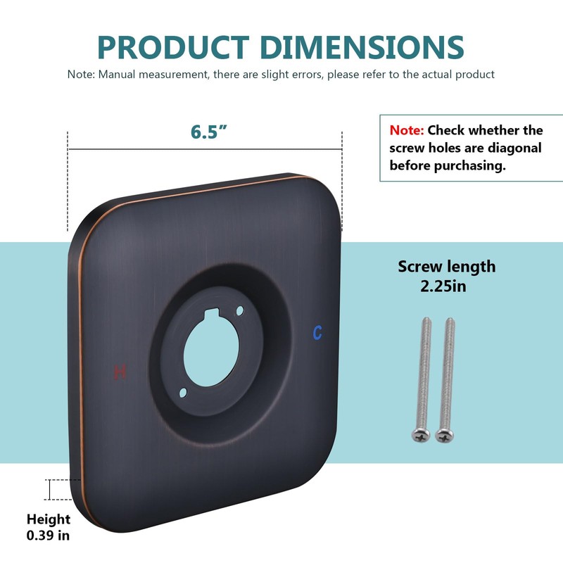 - Dimensions: The escutcheon plate has diameter of 6.5”, includes (2) 2.25-inch mounting screws for quick, hassle-free setup