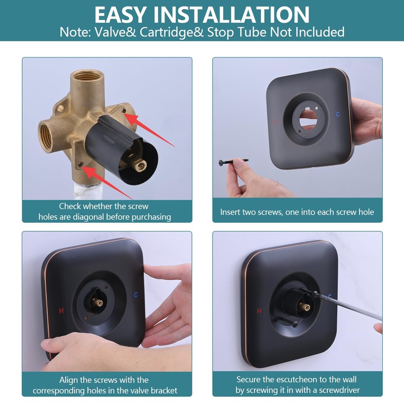RAINREVIVE Replacement Escutcheon Plate, Compatible with Moen Genta LX Posi-Temp, for One-Handle Tub and Shower Faucets, Single Metal Square Shower Escutcheon Kit, Oil Rubbed Bronze