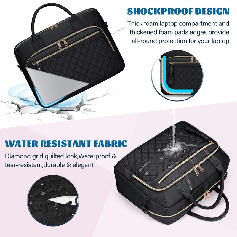 - STYLISH AND PRACTICAL: This laptop briefcase for women is made of water-resistant polyester fabric with a fashionable stitching texture and is equipped with a sturdy and smooth gold-plated zipper, making this laptop bag stylish unique, gorgeous, and practical. This briefcase is suitable for any occasion—commuting, work, travel, college, and business. A great gift for women, mothers, friends, family, and partners on Valentine's Day, Mother's Day, Thanksgiving, Christmas, and Anniversary Birthday