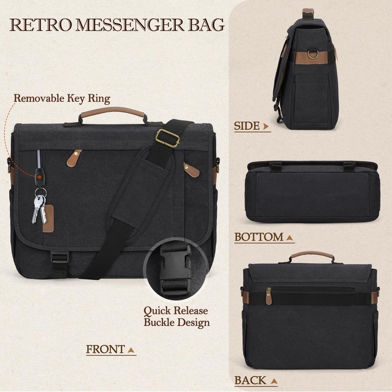 - Removable and Adjustable Shoulder Strap: The canvas messenger bag is equipped with an adjustable shoulder strap with shoulder pads, which is comfortable to carry, and the messenger bag can be used as a briefcase. In addition to the two ways of carrying it on one shoulder and crossbody, you can also remove the shoulder strap and carry it using the leather padded handle that can relieve your hand fatigue