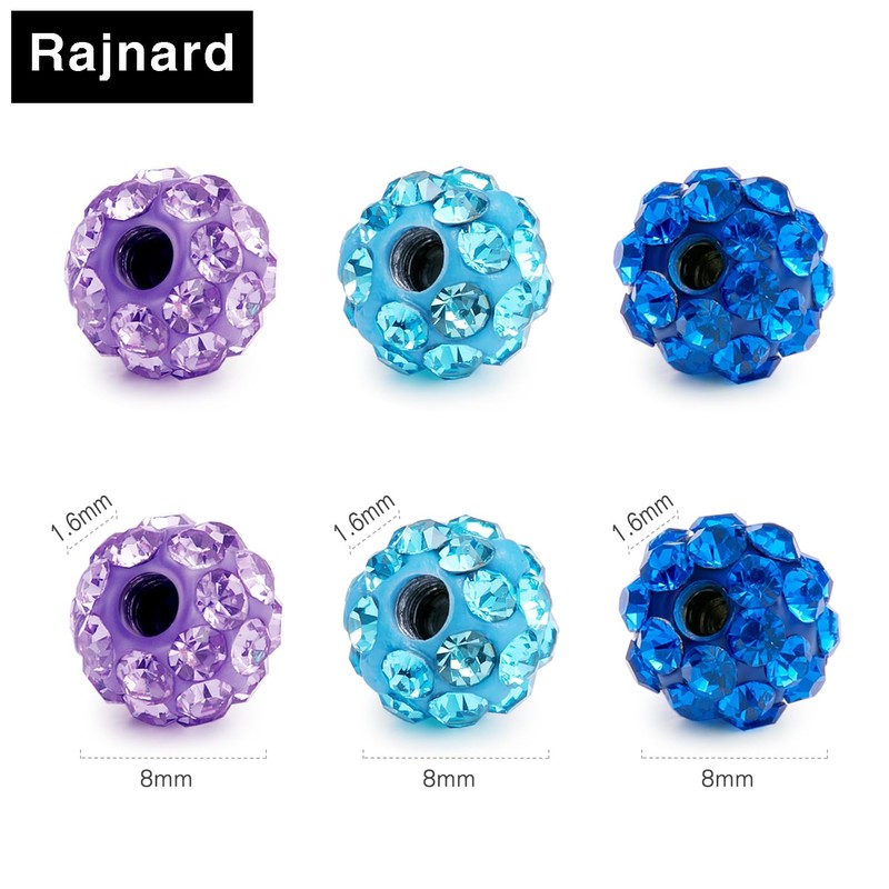 Rajnard Piercing Ball 1.6/1.2/1.0/0.8 mm Thread Surgical Steel 2.5/3/3.5/4/5/6/8 mm Replacement Ball Glitter Piercing Ear Septum Pliers Nose Ring Belly Button Piercing Ball Silver White Pink Purple