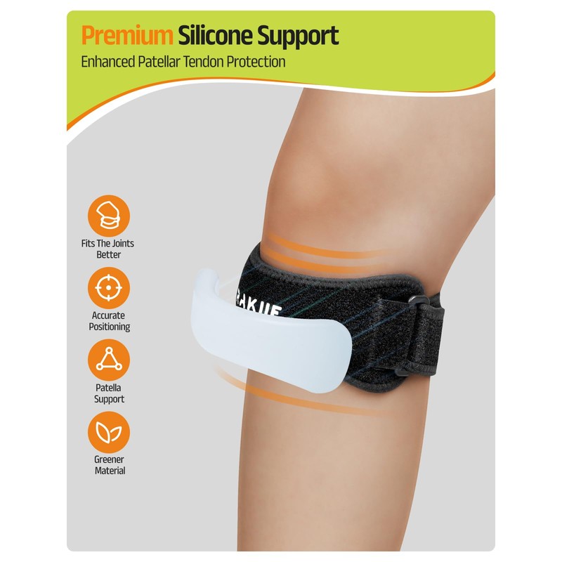 - Refresh Your Exercise Experience: Using durable materials, Rakiie renovated the patellar tendon support strap's connected section and enhanced the knee brace's structure of the velcro strap, allowing it to be easily tightened and never worrying about the strap becoming loosened. There are no more distractions from your knee, and you are always ready to focus your concentration on the activity.
