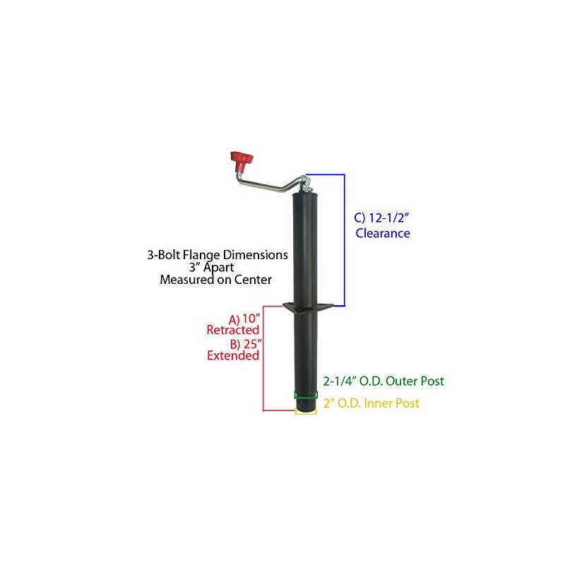 - Extended - 25 inches / Retracted - 10 inches / Clearance 12-1/2 inches