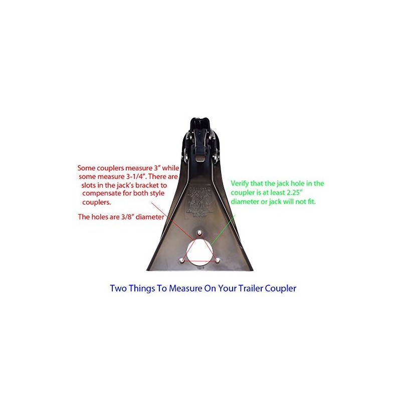 - Bolt-on or weld-on topwind A-frame trailer jack - Mounting hardware included