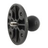 | The High Strength Plastic Universal Camera Plate has a 1.0" diameter Rubber Ball connected at right angles to a 2.5" diameter Plate with a centered 1/4"-20 thread. The plate adds support to the thread, by allowing the camera to rest on the plate, creating a stable connection with the camera. |