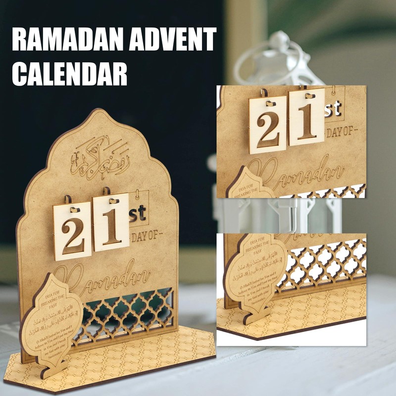 Ramadan Advent Calendar, Creative Wooden Ramadan 30 Days Countdown Calendar Exquisite Eid Mubarak Advent Calendar for Arabic Muslim Islamic Holiday Home Decorations Gift