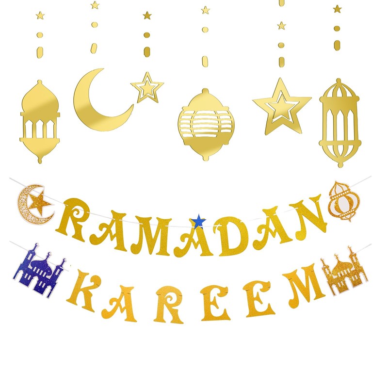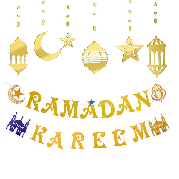 • Ramadan Kareem Decorations: Package includes 1 ramadan kareem banner and 6 different styles and shapes star moon garland in kareem style. perfect for Muslim Islamic Ramadan party decorations.