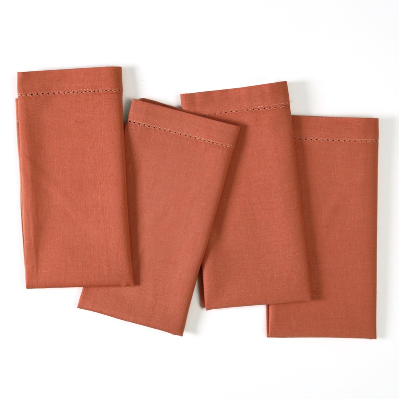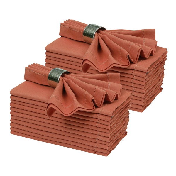 Ramanta Home Linen Flax Cloth Napkins Set of 24 - Soft & Durable Hemstitched Dinner Napkin for Wedding Parties Events | Washable Premium Bulk Cotton Table Décor for Everyday Use 18x18 Inch - Rust