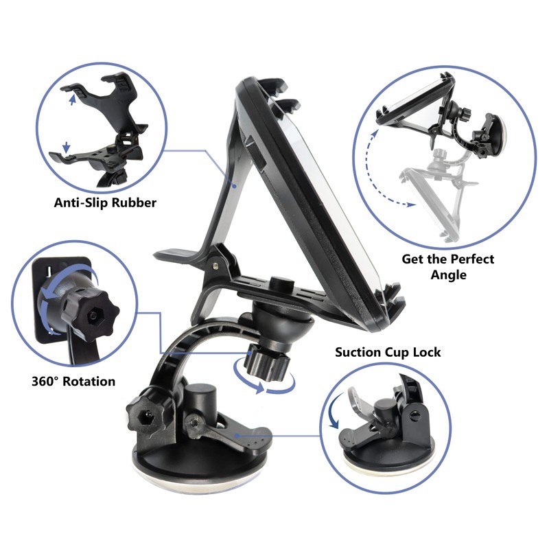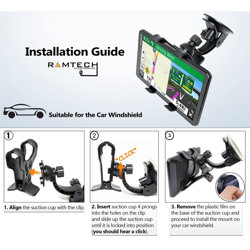 Ramtech Universal Car GPS Windshield Dual Clip Mount, Suction Cup Holder with 360° Rotating Bracket, Compatible with 6 Inch Tomtom Via 62 1600M 1605 1605TM 1605M 1605MRV GPS, WMDC