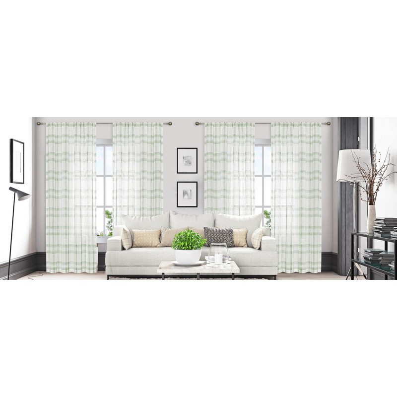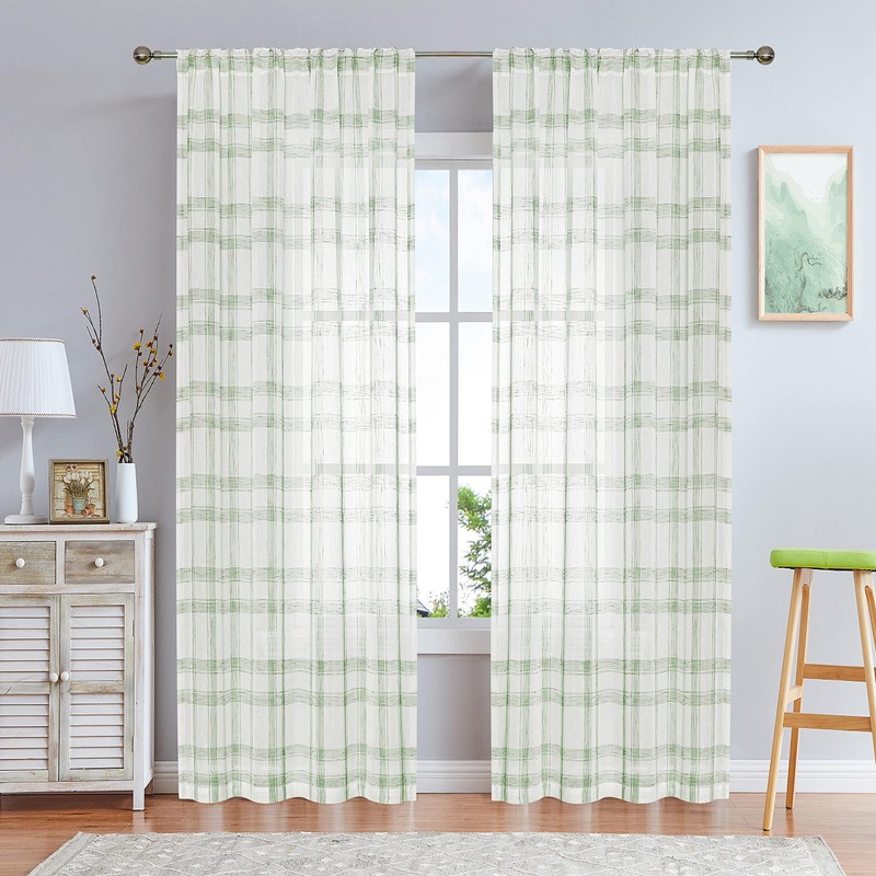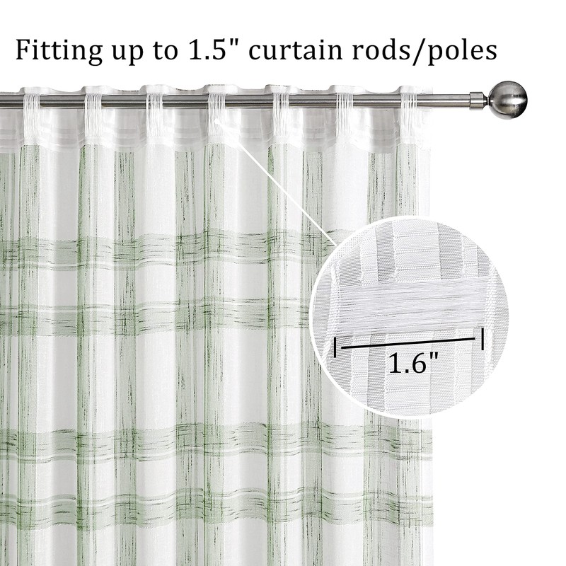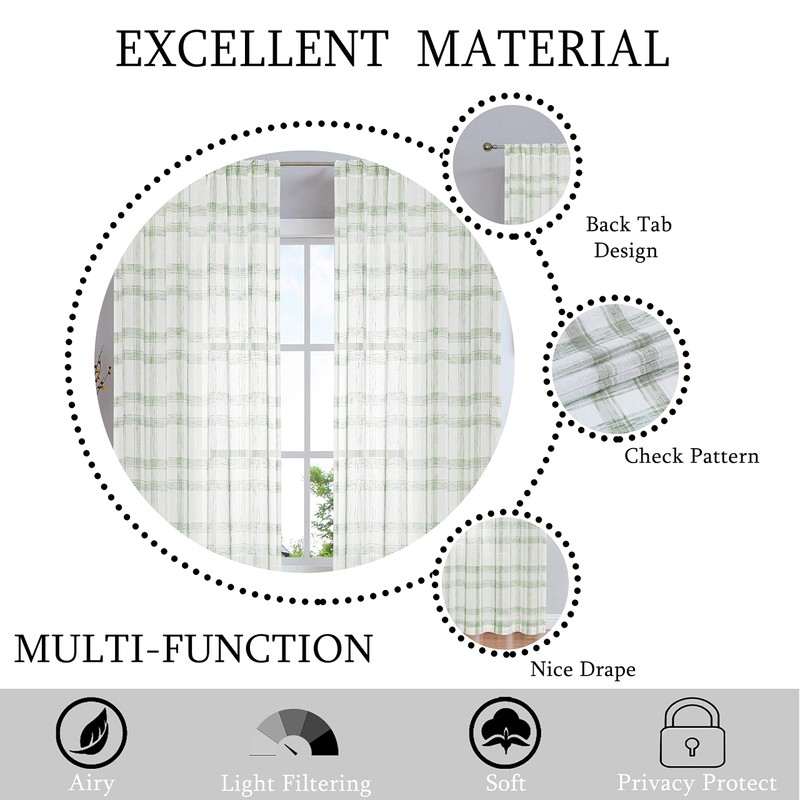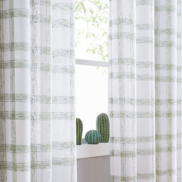 Randall Linen Curtain Panel Pairs for Living Room 63 Inch Length Geometric Check Backtab Rod Pocket Semi Sheer Window Treatment Heavy Rustic Farmhouse Style Drapes for Bedroom, 54"x63"x2, Sage Green