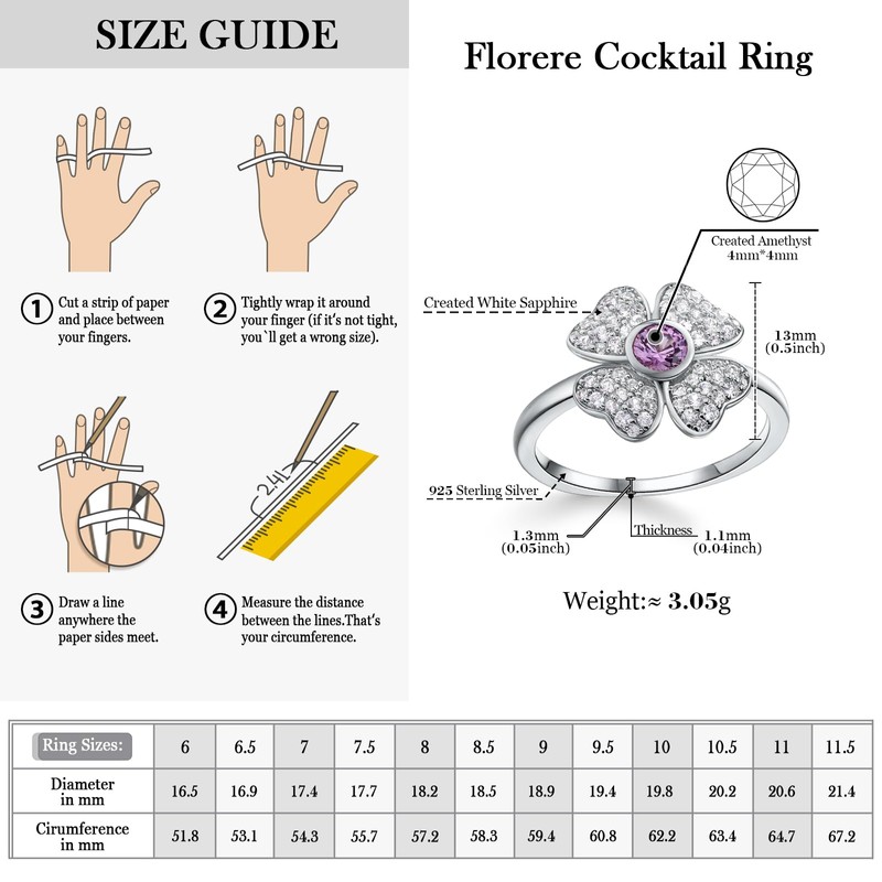 - Flower Rings for Women: This amethyst ring is set with created purple crystal and lab created white sapphire, clarity and sparkle of diamonds
