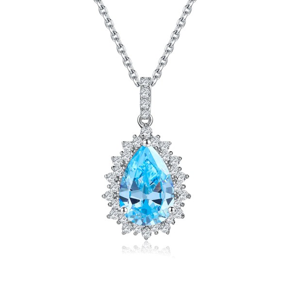 - Aquamarine Necklace: This womens gemstone necklaces is a 12 mm x 8 mm pear cut created aquamarine and surrounded by a lap sparkling 5a cubic zirconia. The halo setting enhances the size and brilliance of the main stone, making it a mesmerizing focal point