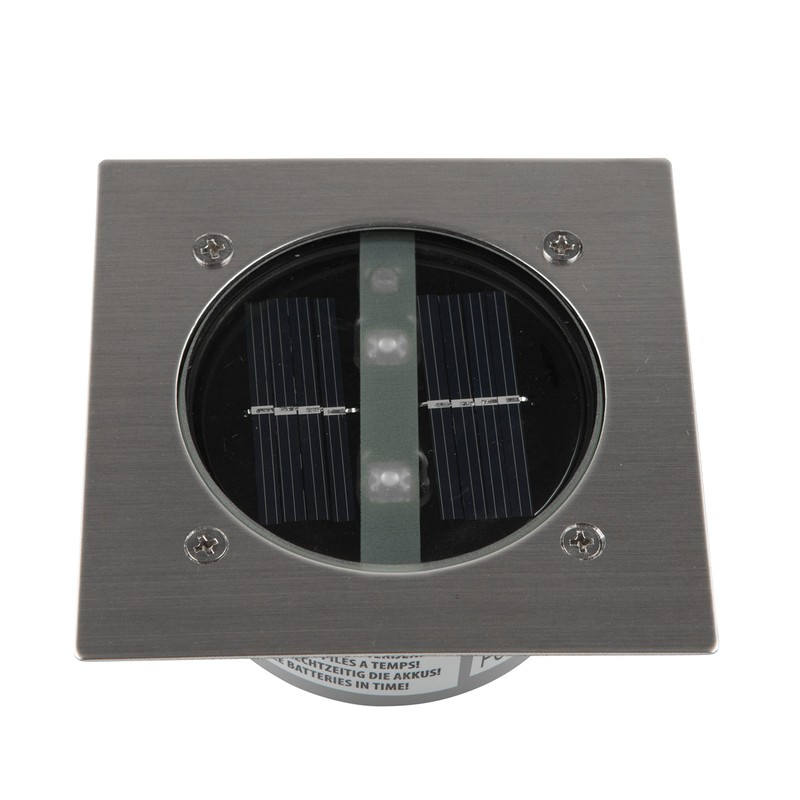 The 2x 0.06-watt LED is wirelessly and is supplied with rechargeable batteries. In the daytime, the batteries are recharged and when the night falls is, the lights turn on. If the batteries are fully charged, the LED solar ground spot operating time is approx. five hours. This square LED solar ground spot works with 2x AAA batteries.