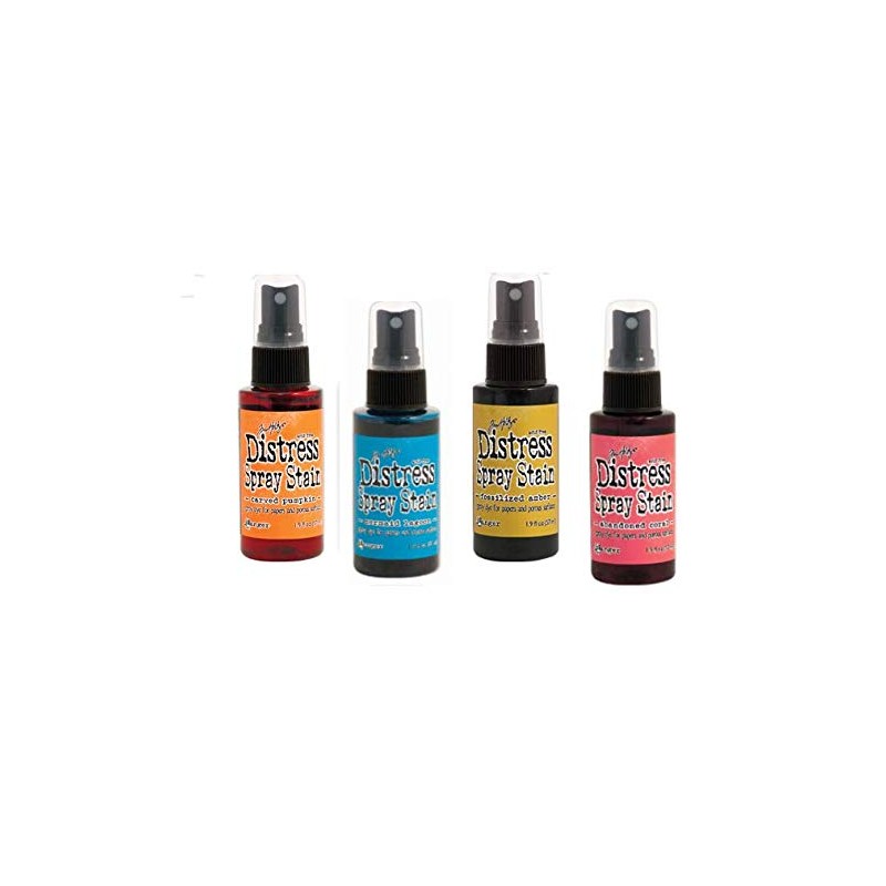 Ranger Distress Spray Stain Bundle - Includes 4 Perfectly Paired Distress Spray Stains with PTP Flash Deals Detail Sticks (Fossilized Amber, Carved Pumpkin, Mermaid Lagood, Abandoned Coral)