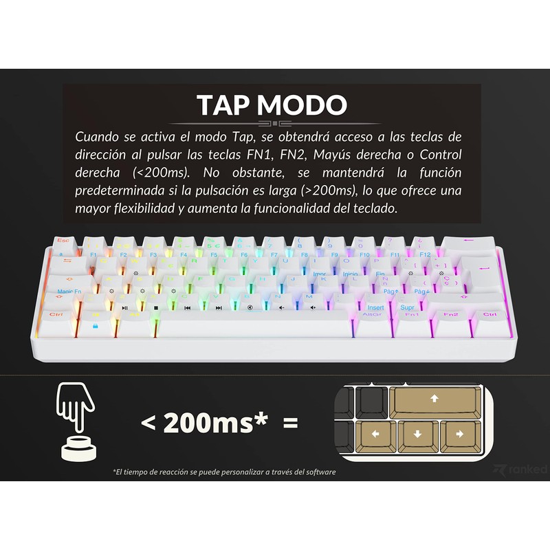 • ⏩ TAP MODE: Don't lose your arrow keys! No need to hold a function key, simply tap to move! via " Shift , FN, Menu and Ctrl".