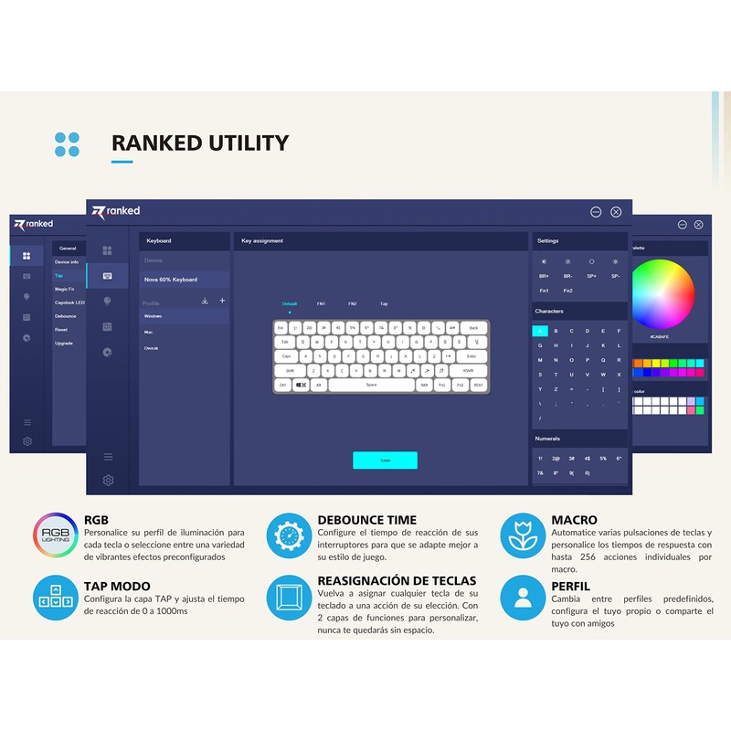 • ⏩ SOFTWARE: set up complex macros or rebind keys as you wish and customize lighting effects