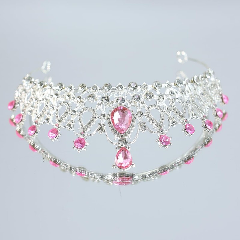 Rannyrena Crystal Wedding Tiaras and Crowns for Women Elegant Royal Queen Crown Sparkling Rhinestone Bridal Headbands Princess Quinceanera Headpieces for Birthday Prom Pageant Party (Silver-pink)