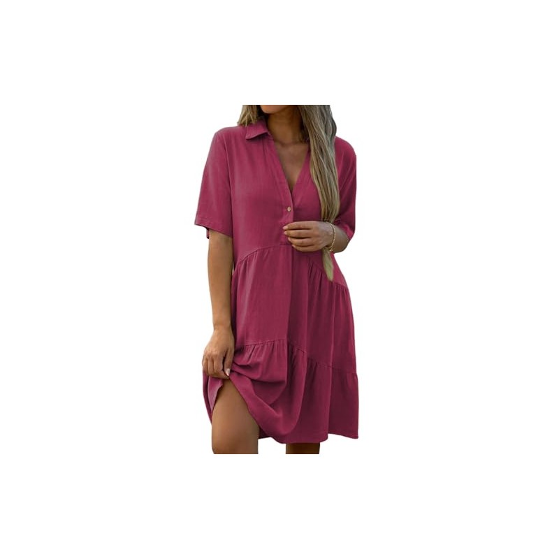 RANPHEE Burgundy Summer Dress for Women 2025 Baby Doll A Line Loose Fitting High Waisted Ladies Flowy Beachy Linen Shirt Dresses That Hide Belly Fat S