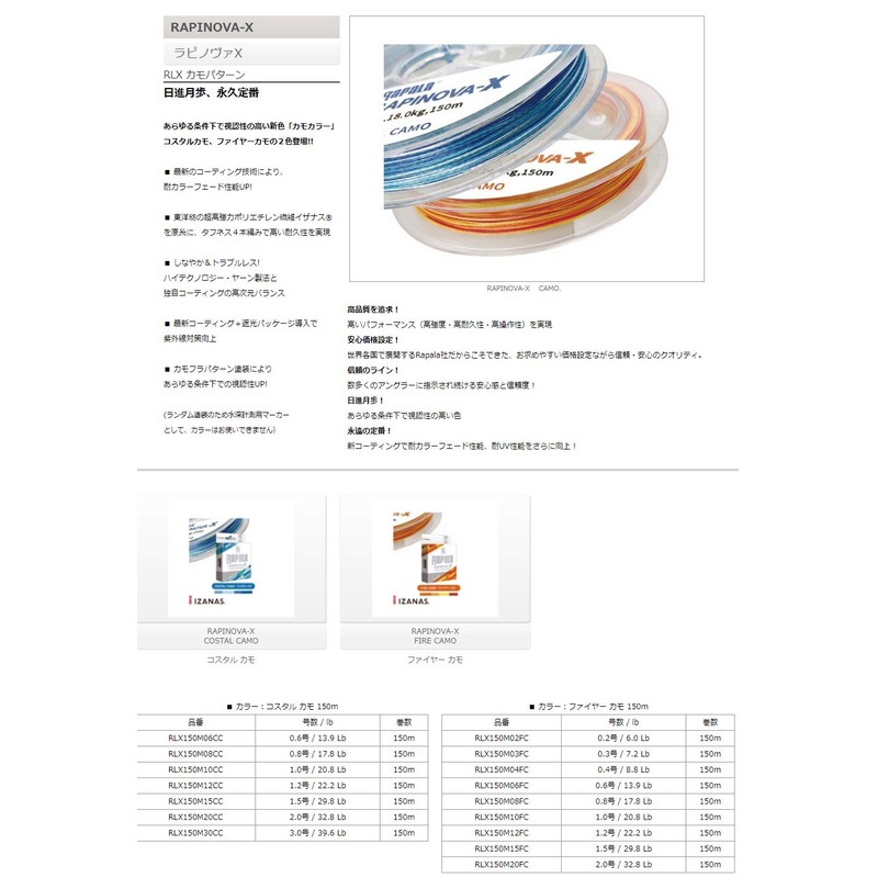Rapala RLX150M12FC PE Line Lapinova X Camo Pattern, 150m, No. 1.2, 22.2lb, 4 Braid Fire Camo