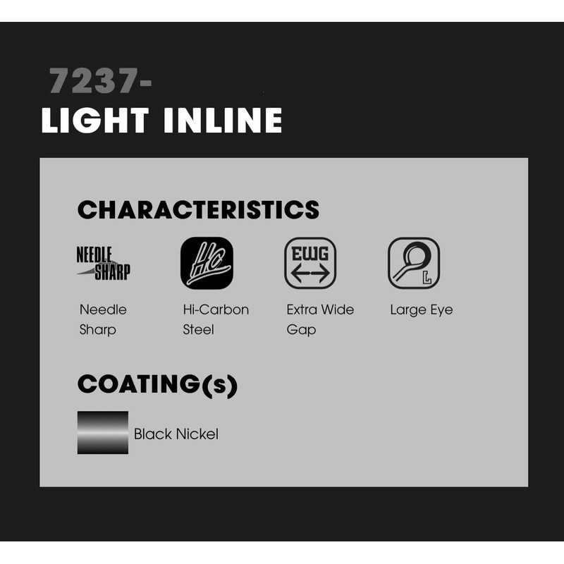 - VMC 7237 Inline Single Hook Size 6, Needle Point, Extra Wide Gap, Light Wire, Non-Offset, Large Eye, Coastal Black