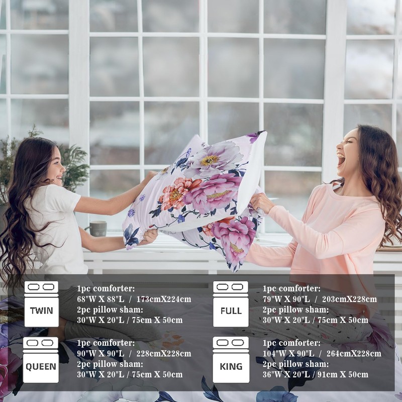 - floral bedding Twin comforter sets Design: This floral Comforter features Unique 3D print technology with beautiful floral printed on the front, IAnti-fade t is beautiful and also allows you to enjoy a comfortable sleep.