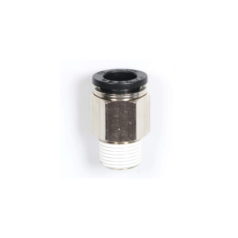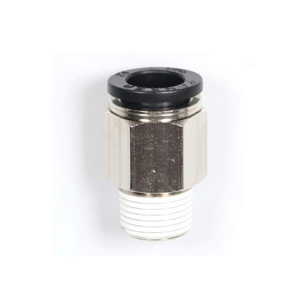 The Rapidair 50110, 1/2 in. tubing x 1/2 in. Male NPT adapter fitting, features a push to connect style to make fast and easy connections. There is no glue, soldering or crimping needed. Simply cut the tubing to length and insert the tubing into the fitting. Tubing can be released by push button if desired.