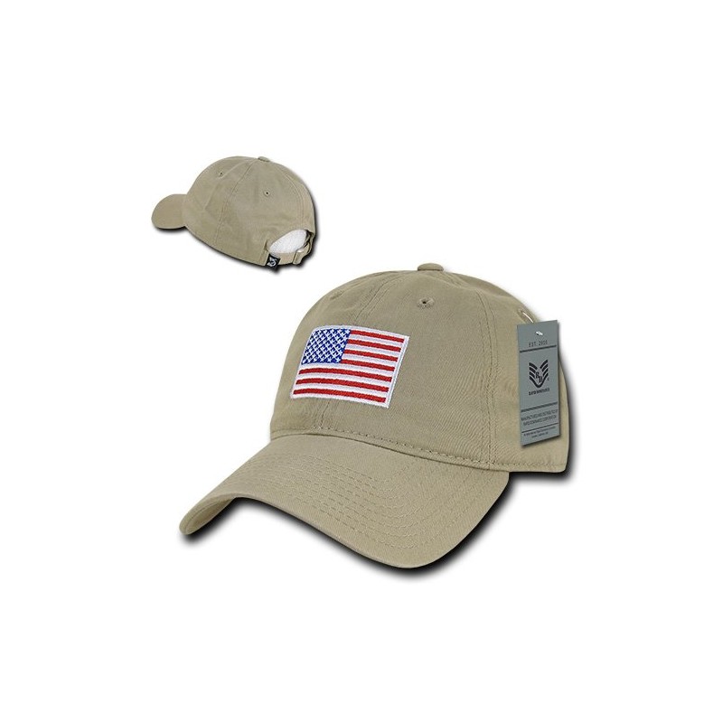 Rapiddominance A03-USA-KHA Relaxed Graphic Cap, Original USA Flag, Khaki