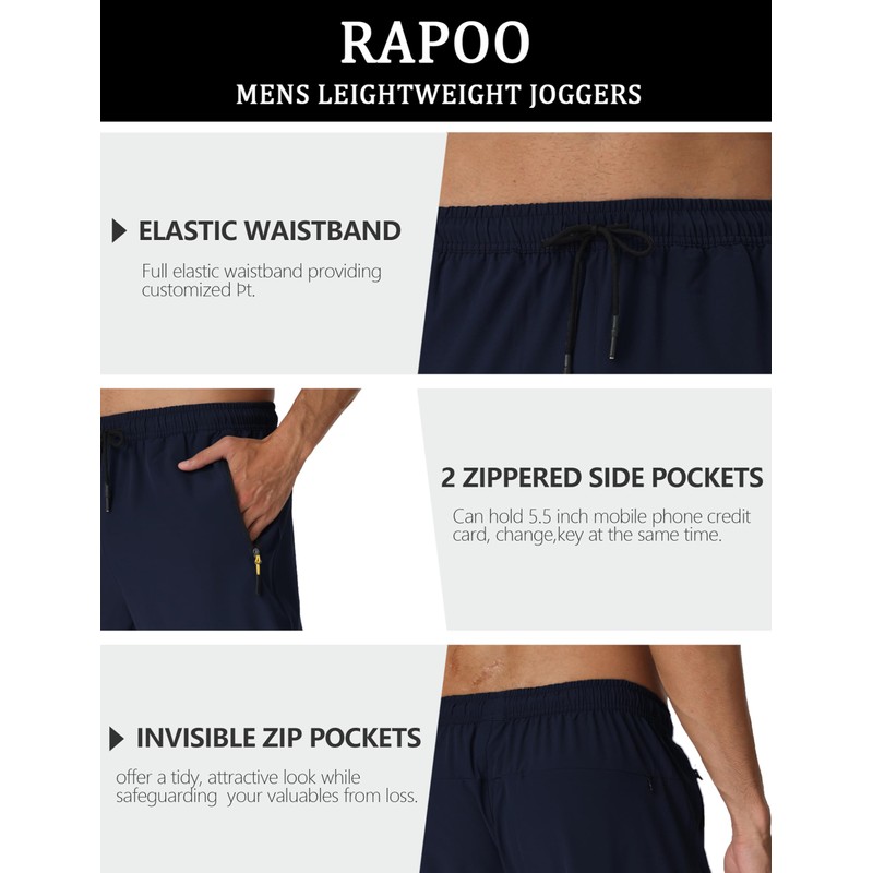 - Quick Dry Sweat Pants --- Rapoo athletic pants for men are made from the quick dry fabric designed to remove moisture from your body, provides lightweight comfort along with sweat absorption and drying capabilities.