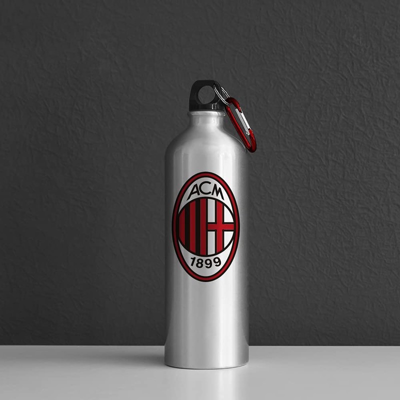 Rapoza Collective - Botella de Agua MILAN AC, Termo de Agua, Botella Deportiva, 750ml (25.3oz), Hecha de Aluminio, Resistente, Ligera, Termo Deportivo, Water Bottle, Sport Bottle (Blanco)