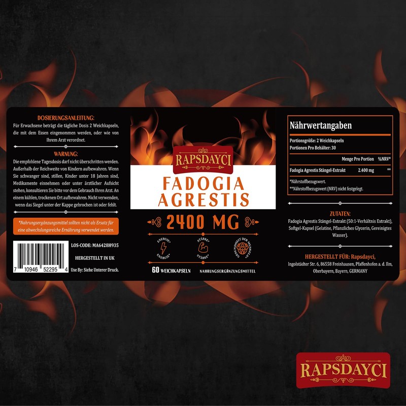 Rapsdayci Fadogia Agrestis, 2400 mg, Highly Effective 50:1 Extract, Powerful Fadogia Agrestis Supplement for Endurance, Power, Drive and Performance (60 Pieces (Pack of 2)