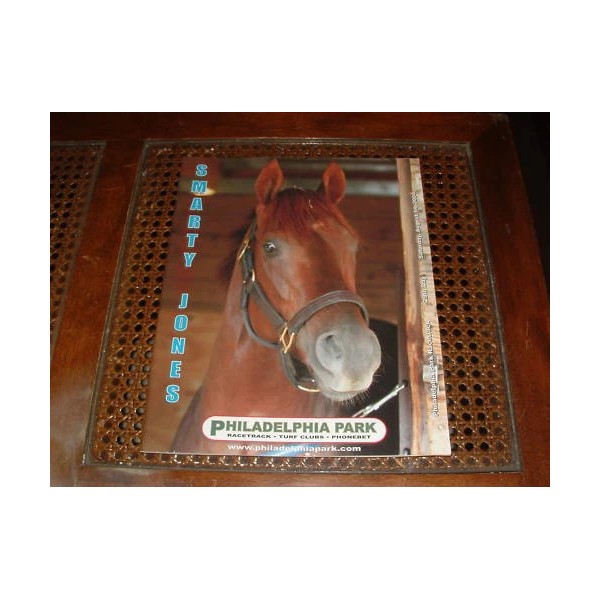 This program is extremely rare. It is directly from Philadelphia Park and was purchased on the date of Smarty's retirement (8-14-2004) at the track. There are an additional 10 photos of Smarty on the inside covers and back.