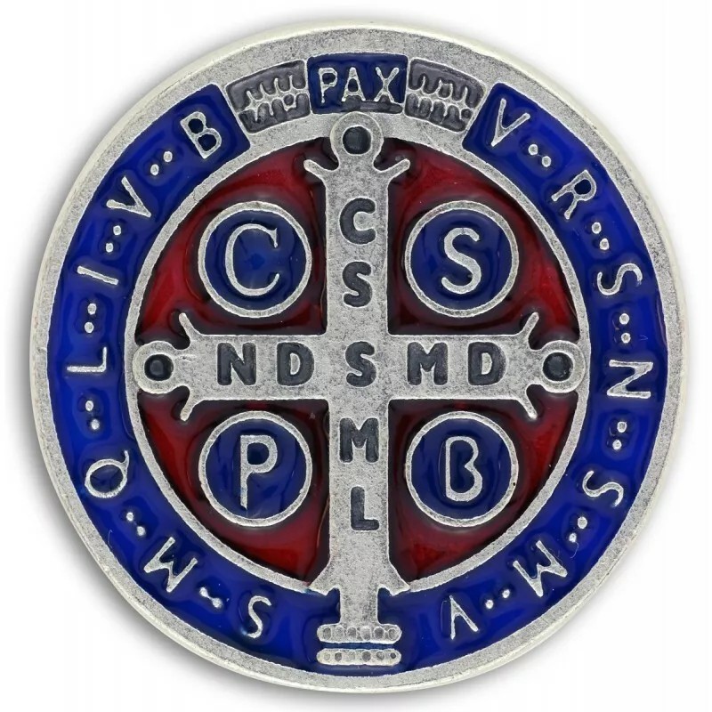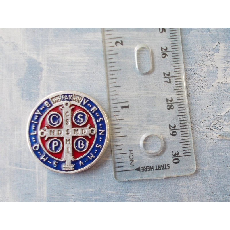 Rare St Benedict Pocket Token Protection 1-1/8" Saint Medal ENAMEL Red/Blue
