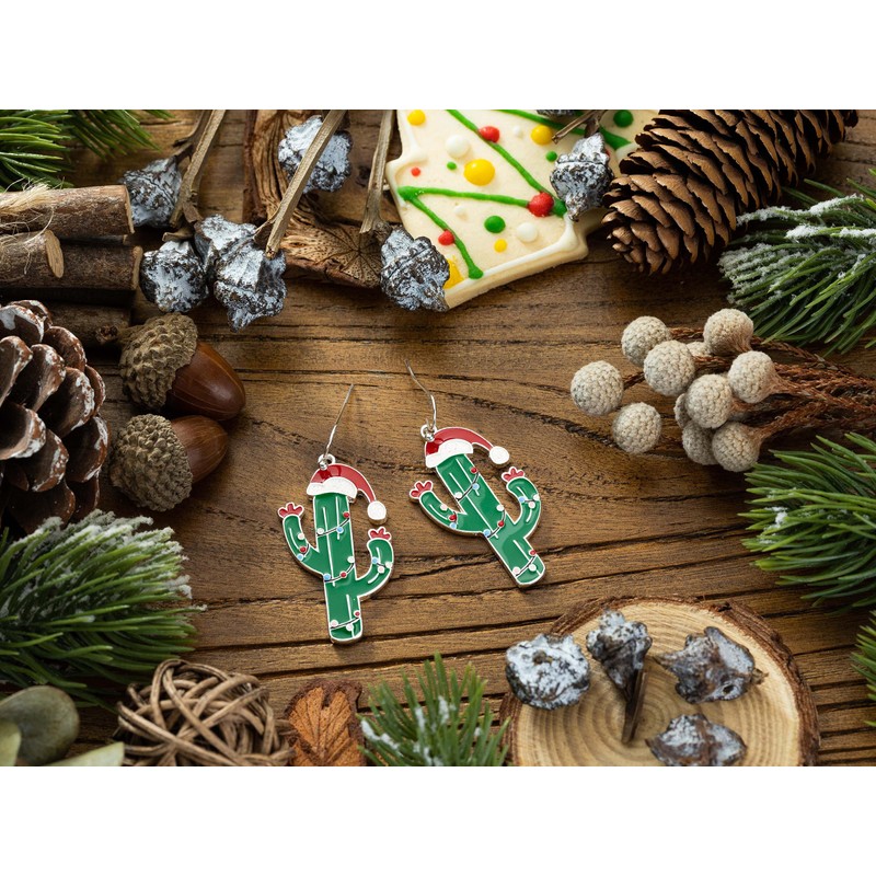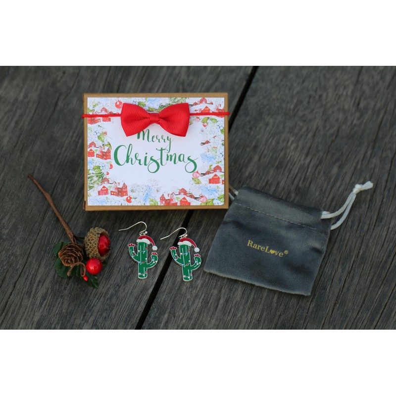 RareLove Green Christmas Cactus Earrings with Red Sant Hat Drop Dangle Earrings For Women, Holiday Earrings, Cute Earrings, Christmas Jewelry