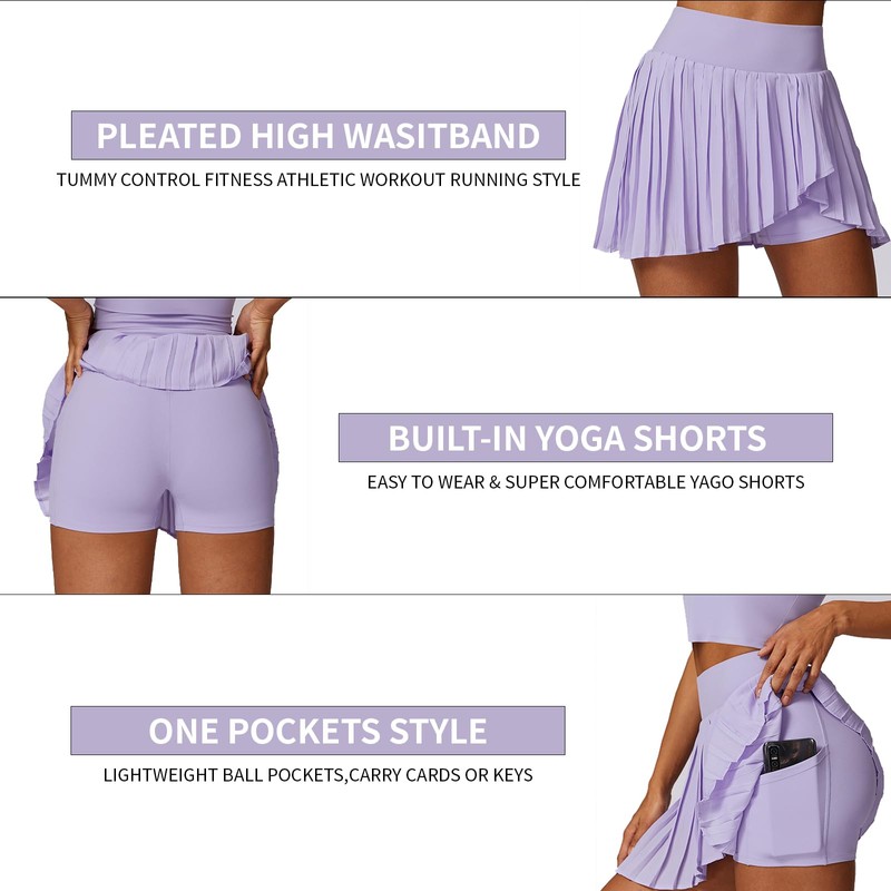 - This women's high waisted skorts skirts for women activewear is designed with pleated hem all around. The flowing looks make you more fashionable during workout. Pleated skirts for women helps you enjoy the beauty while exercising.