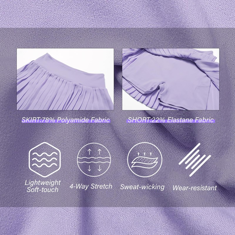 Raroauf Tennis Skirts for Womens Girls Pleated Golf Skorts High Waisted Athletic Flowy Mini Skirts with Shorts Purple Small