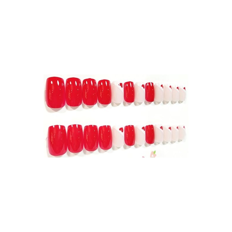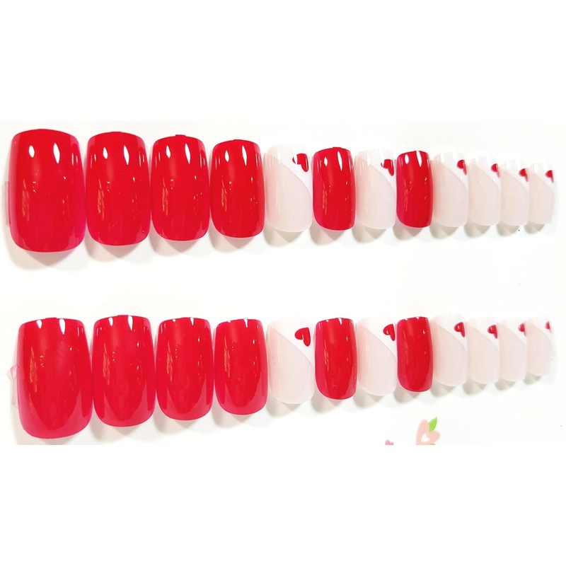 Raspberry Hearts Glossy Square Press-On Nails - 24 Pieces - Artificial Nail Kit