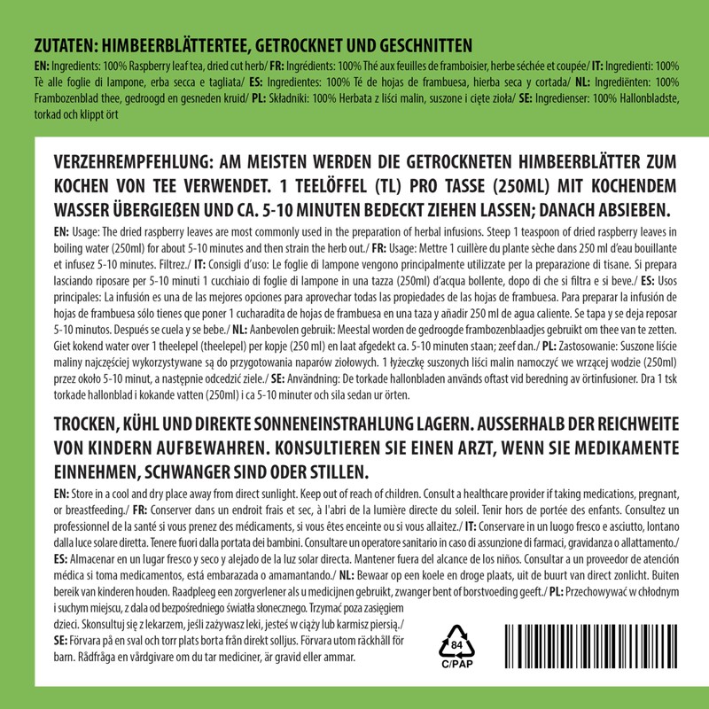 - 🌿 THE RASPBERRY TEA: The popular tea infusion consists of dried leaves of raspberry bush, which are well known for their qualities.
