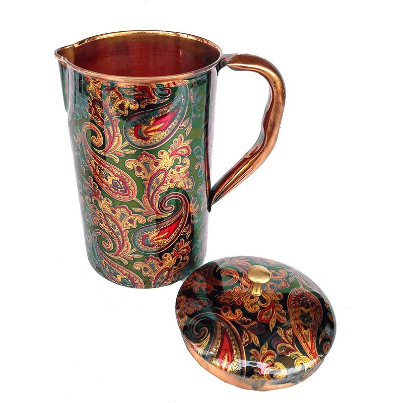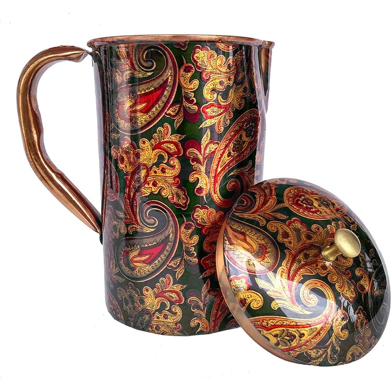 Rastogi Handicrafts Pure Copper Jug Screen Printed pitcher (1 Pitcher)
