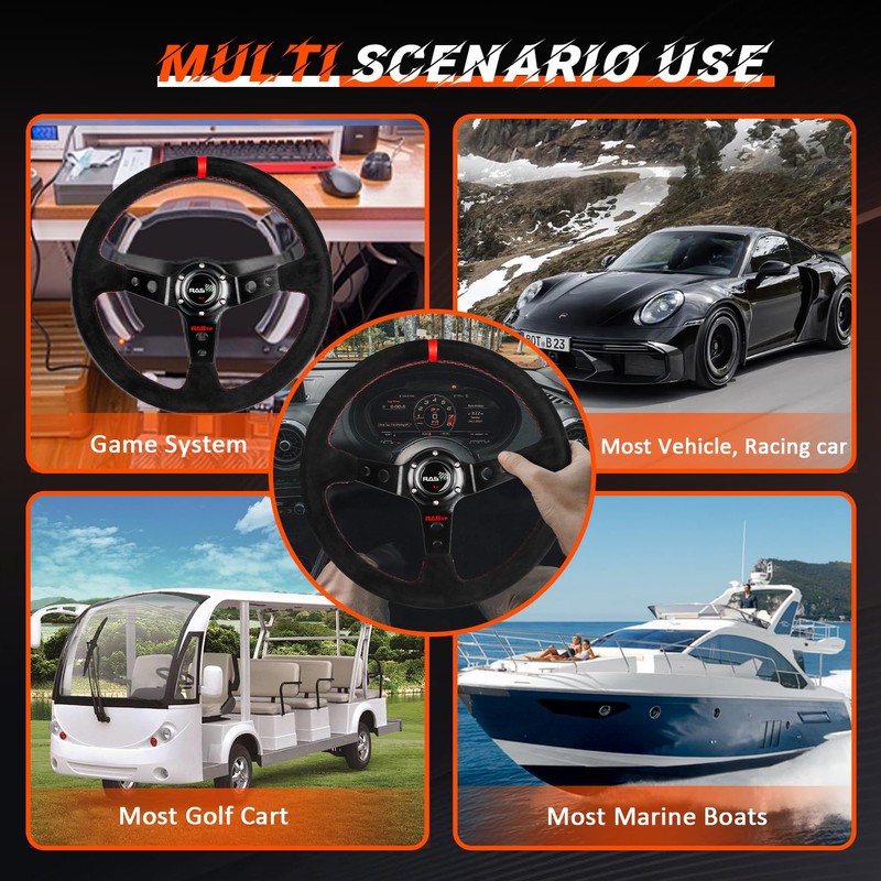 - Universal Application - This racing steering wheel is compatible with most standard hub adapter, universal for most vehicle, racing car