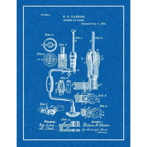 Ratchet Bit-brace Patent Print Blueprint with Border (5" x 7") M10778