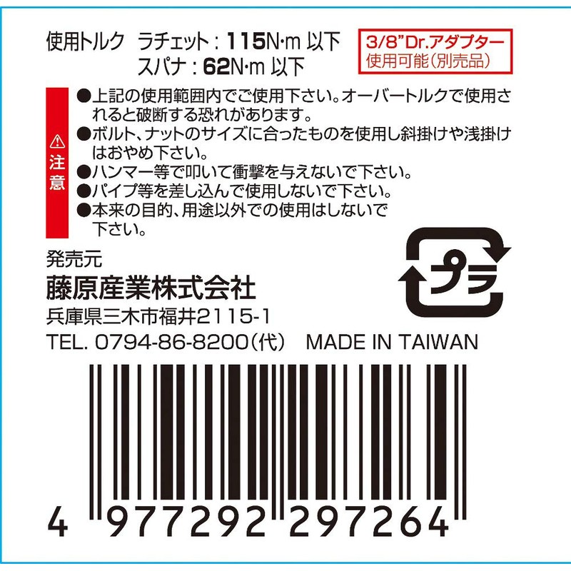 - 用途:六角ボルト・ナットの締付け、緩め作業