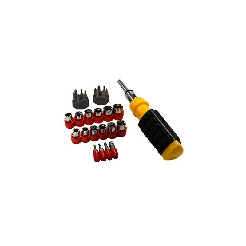 Screwdriver Features a Rubber Fan Gripped Handle and Magnetic Grab Shaft. Set Includes all the most commonly used bits: Phillips, Square Bits, Slotted Bits, Torx Bits, Bit Adapter for Sockets.