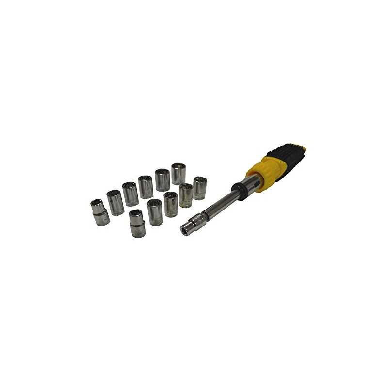 • Includes: 1/4" Drive Adapter and the Following 12 Most Common MM and SAE Sockets: 5mm, 6mm, 7mm, 8mm, 9mm, 10mm and 1/4", 5/16", 11/32", 3/8", 7/16" and 1/2"