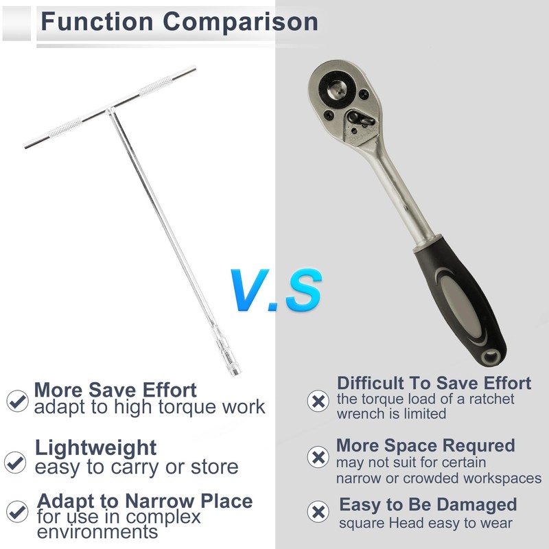 - Functionality:Durable Design: T Type Design spanner tool provides a firm grip and gives you more turning power for easy turning. The wrench repairing tool smooth tool finish and easy to cleanup. Easily into even the most restricted spaces and still allow you to swing your wrench.